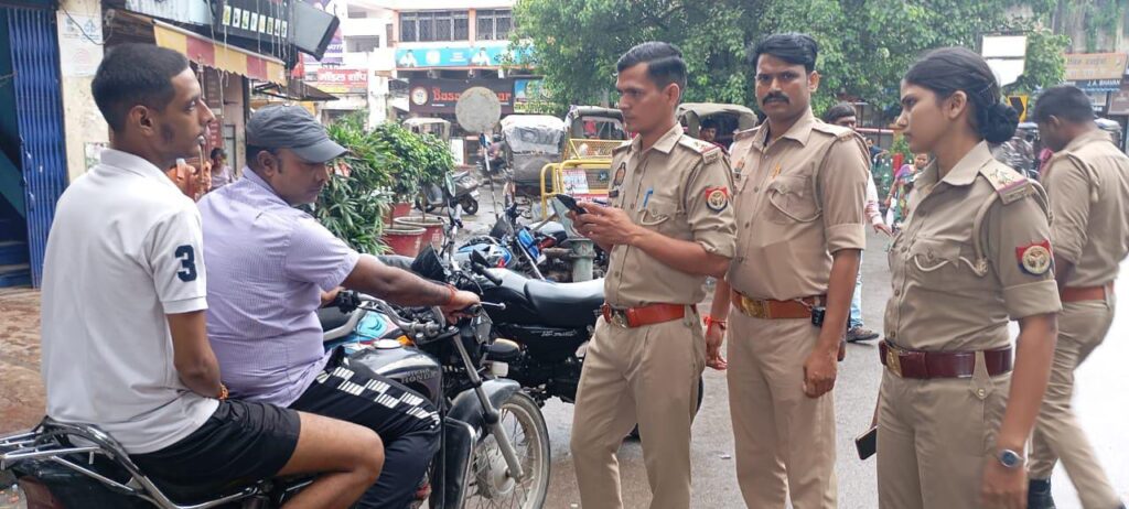 वाराणसी जनपद में अपराध एवं अपराधियों के विरुद्ध चलाए जा रहे अभियान को देखते हुए पुलिस कमिश्नरेट वाराणसी द्वारा दो पहिया वाहन चेकिंग अभियान चलाया गया। जिसमें चेतगंज चौकी इंचार्ज शिवम मिश्रा ने अपनी टीम को लेकर चेतगंज चौराहे पर संघन चेकिंग अभियान चलाया। जिसमें मुख्य रूप से बिना नंबर प्लेट की गाड़ियां व ट्रिपलिंग सवारी के साथ साथ बिना हेलमेट लगाए लोगों की चेकिंग किया गया। जिसमें कुछ गाड़ियां ऐसी भी पकड़ी गई जिनके मौके पर वाहन के कागजात नहीं थे। उन्हें कड़ी हिदायत देते हुए चौकी प्रभारी ने जाने दिया क्योंकि ऐसे लोग बुजुर्ग आदमी या तो महिला लिए हुए थे। वहीं दूसरी ओर एक गाड़ी ऐसी पकड़ी गई जिसका नंबर प्लेट समझ में ही नहीं आ रहा था। जिसका मौके पर ही चालान किया गया। जांच करने वाली टीम में मुख्य रूप से एस आई अभिषेक राव रितिक राज किशन गोंड एंटी रोमियो मिशन शक्ति की एस आई जागृति गिरी थाना चेतगंज इत्यादि लोग मौके पर मौजूद रहे।
