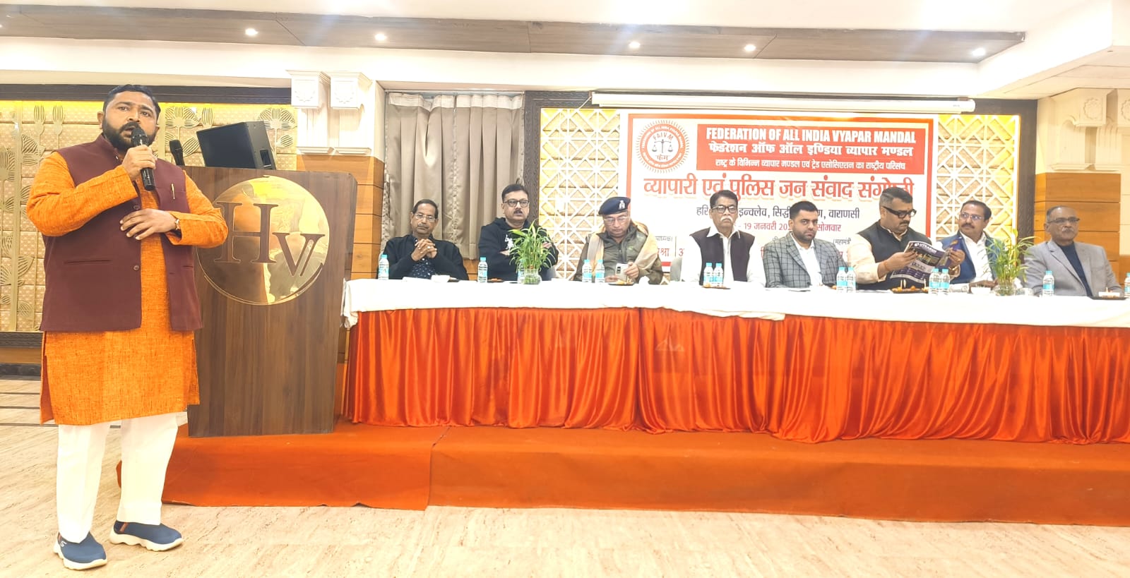 वाराणसी आज दिनांक 19 जनवरी 2025 दिन सोमवार को को होटल हरि विलास के सभागार में फेडरेशन ऑफ आल इंडिया व्यापार मण्डल के वाराणसी जिला इकाई की ओर से “जनसंवाद, व्यापारिक समस्याएं ,यातायात एवं कानून व्यवस्था व संगठन विस्तार संगोष्ठी” आयोजित किया गया।कार्यक्रम के मुख्य अतिथि अंशुमान मिश्रा ADCP यातायात ,वाराणसी कमिश्नरेट ,विशिष्ट अतिथि फेडरेशन ऑफ आल इंडिया व्यापार मंडल के राष्ट्रीय उपाध्यक्ष प्रेम मिश्रा रहें |