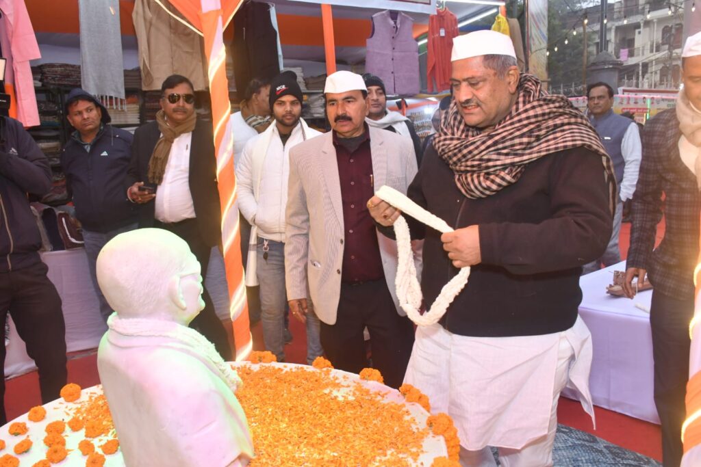उ०प्र० खादी तथा ग्रामोद्योग बोर्ड द्वारा अर्बन हॉट प्रांगण चौकाघाट वाराणसी में आयोजित खादी एवं ग्रामोद्योग तथा एक जनपद एक उत्पाद उत्सव 2025-26 “मण्डल स्तरीय खादी ग्रामोद्योग प्रदर्शनी” (दिनांक–20 दिसम्बर 2025 से 29 दिसम्बर 2025 तक) मा0 विधान परिषद सदस्य द्वारा गांधीजी की प्रतिमा पर माल्यार्पण कर व खादी उत्पादकों, दुकानदारों को सराहा व
