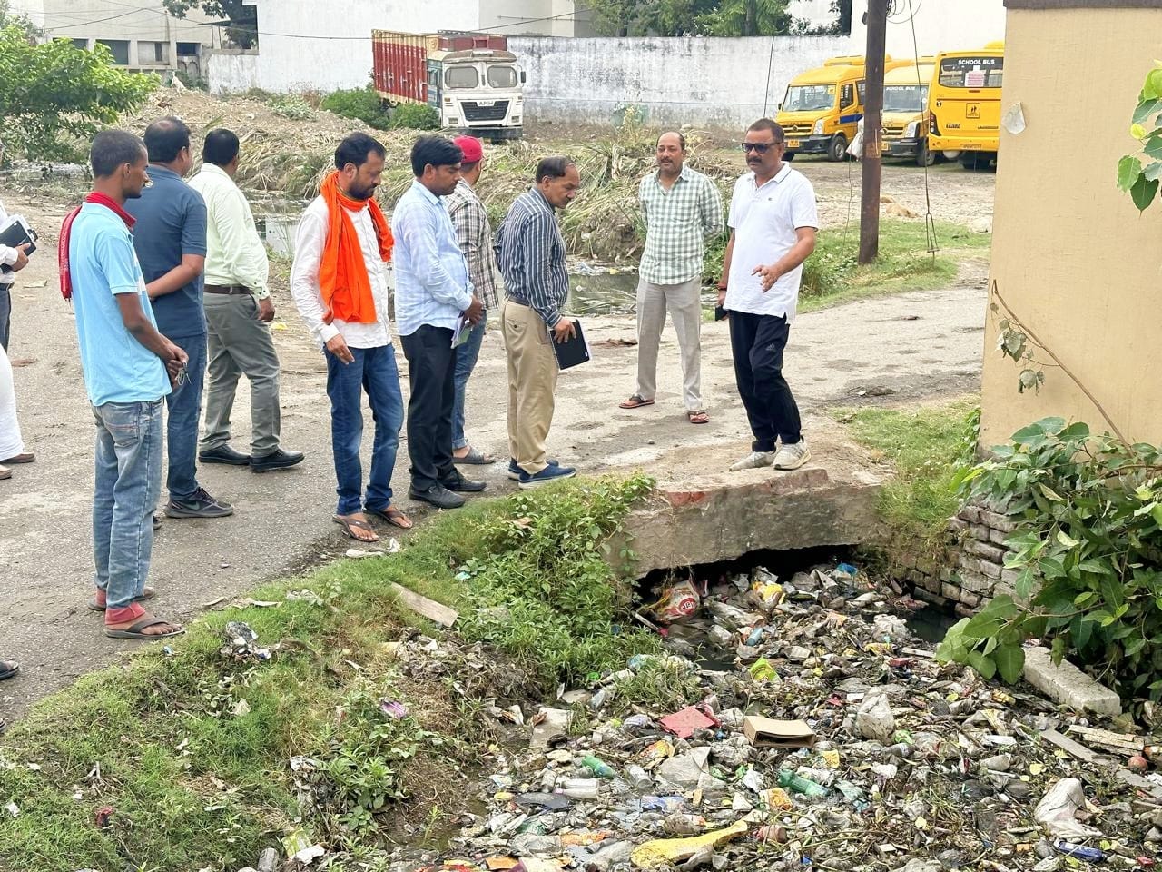 महापौर द्वारा कंचनपुर मार्ग स्थित नाले एवम कंदवा वार्ड में विश्वकर्मा नगर होते हुए विवेकानंदपुरम कॉलोनी जाने वाले नाले के सफाई कार्य का किया गया निरीक्षण