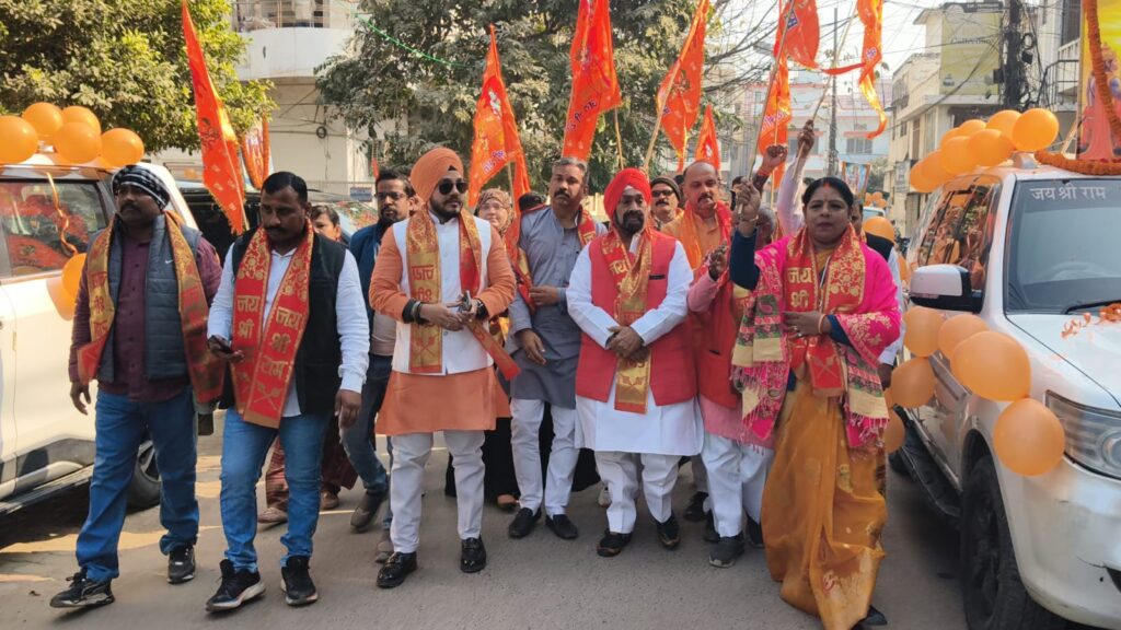 श्री राम मंदिर के उद्घाटन के तीसरी वर्षगांठ के पूर्व दिवस पर शोभा यात्रा निकाली गई