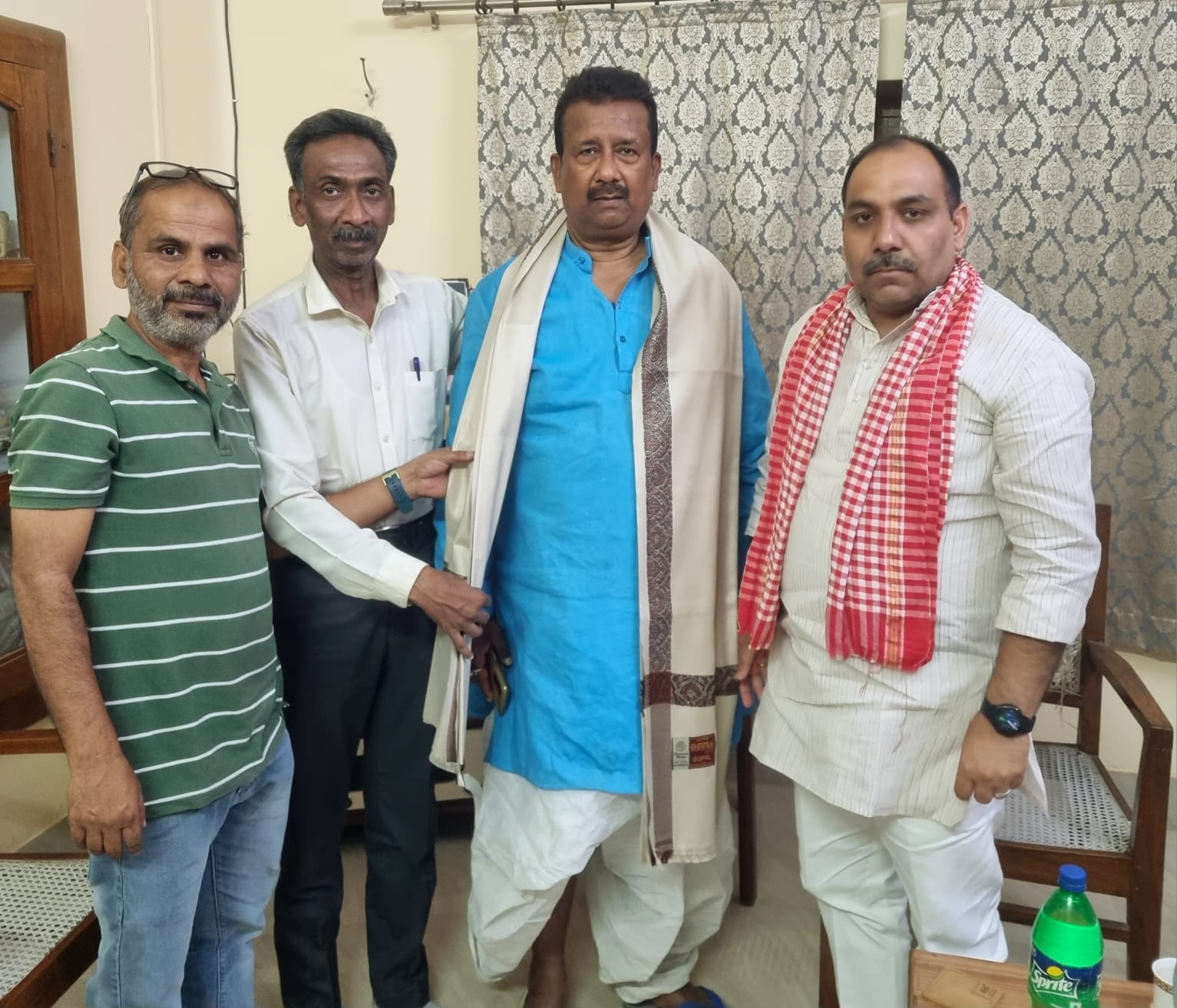 Varanasi: आगामी चुनाव को लेकर इंडिया गठबंधन की भूमिका को लेकर कांग्रेस महानगर अध्यक्ष राघवेंद्र चौबे समाजवादी पार्टी के महानगर अध्यक्ष दिलीप डे के आवास पर जाकर शिष्टाचार भेंट किए व उन्हें अंगवस्त्र भेंट किये वही सपा के महानगर अध्यक्ष ने अपने आवास पर कांग्रेस महानगर अध्यक्ष का गर्मजोशी से स्वागत किये|